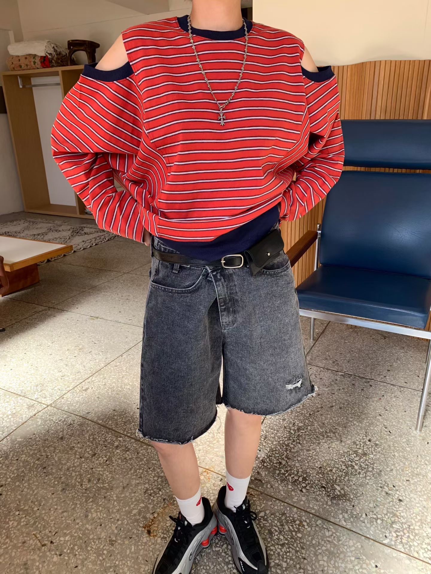 KL15 / COLD SHOULDER STRIPE TOP